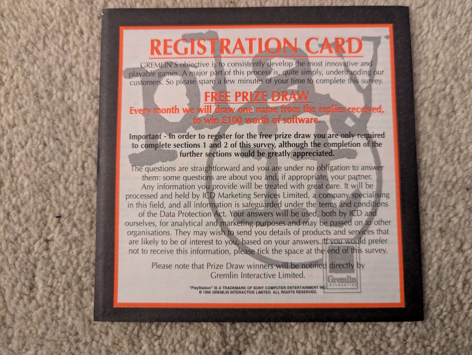 Gremlin PWEI Play It registration card