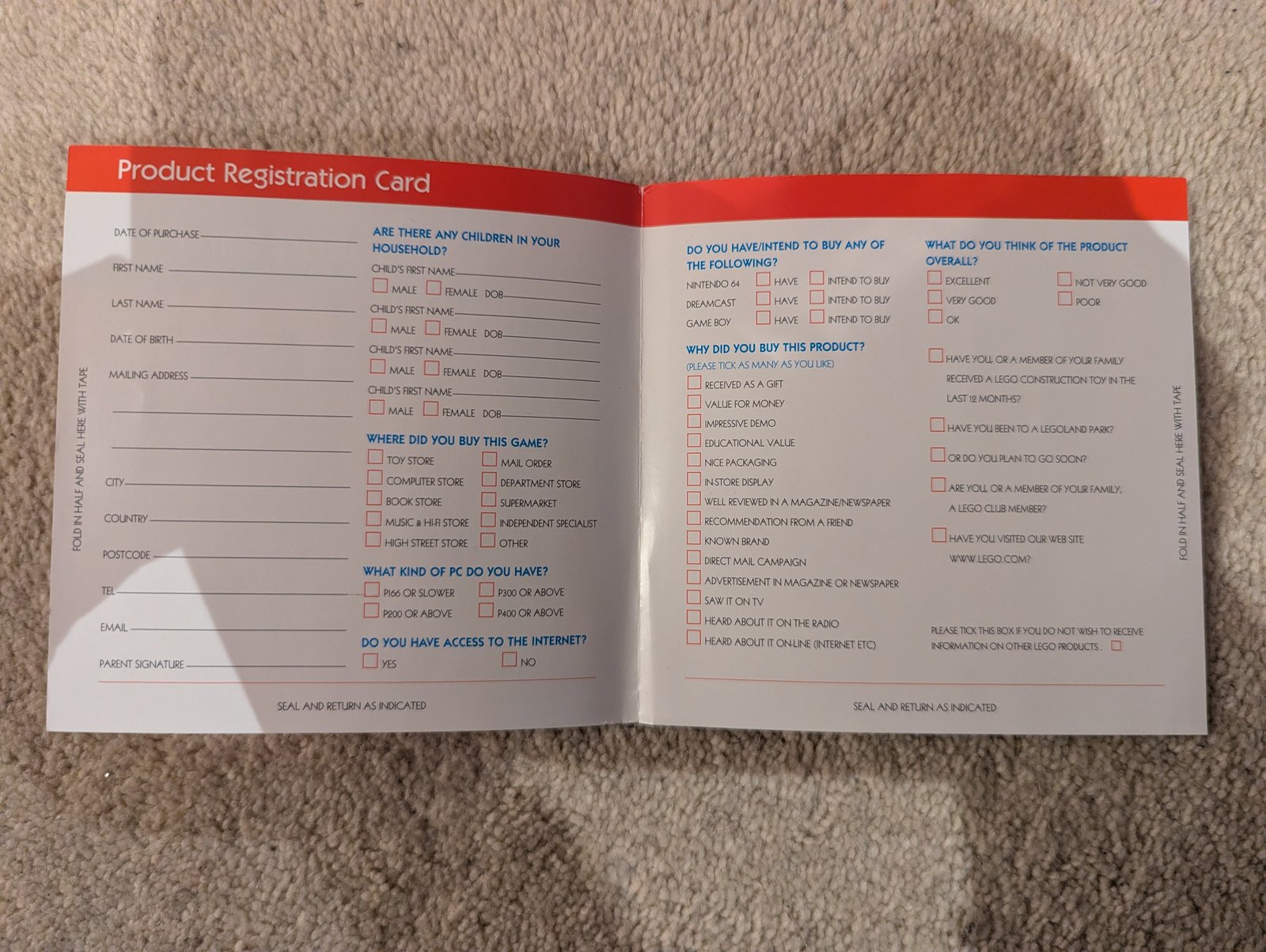 Lego Media Crawley 300 Registration Card