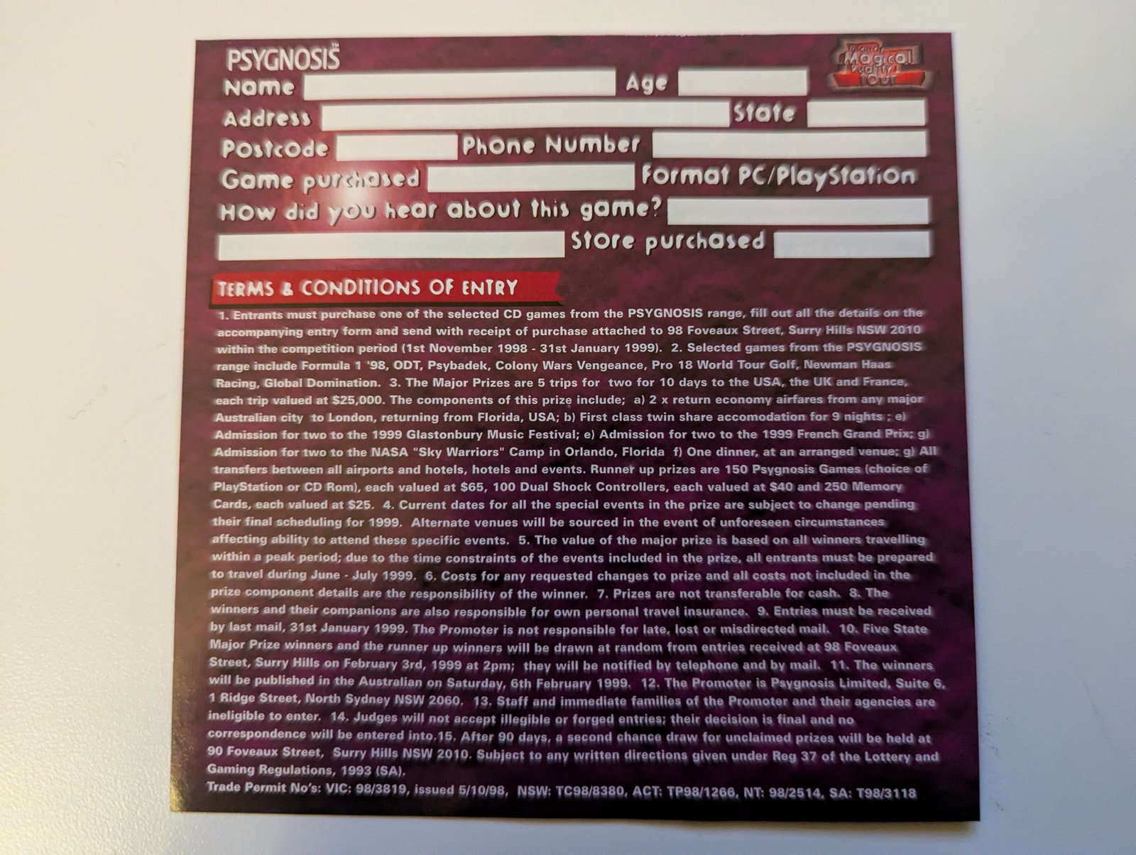 A Psygnosis Magical Mystery Tour competition entry leaflet — Australian edition.