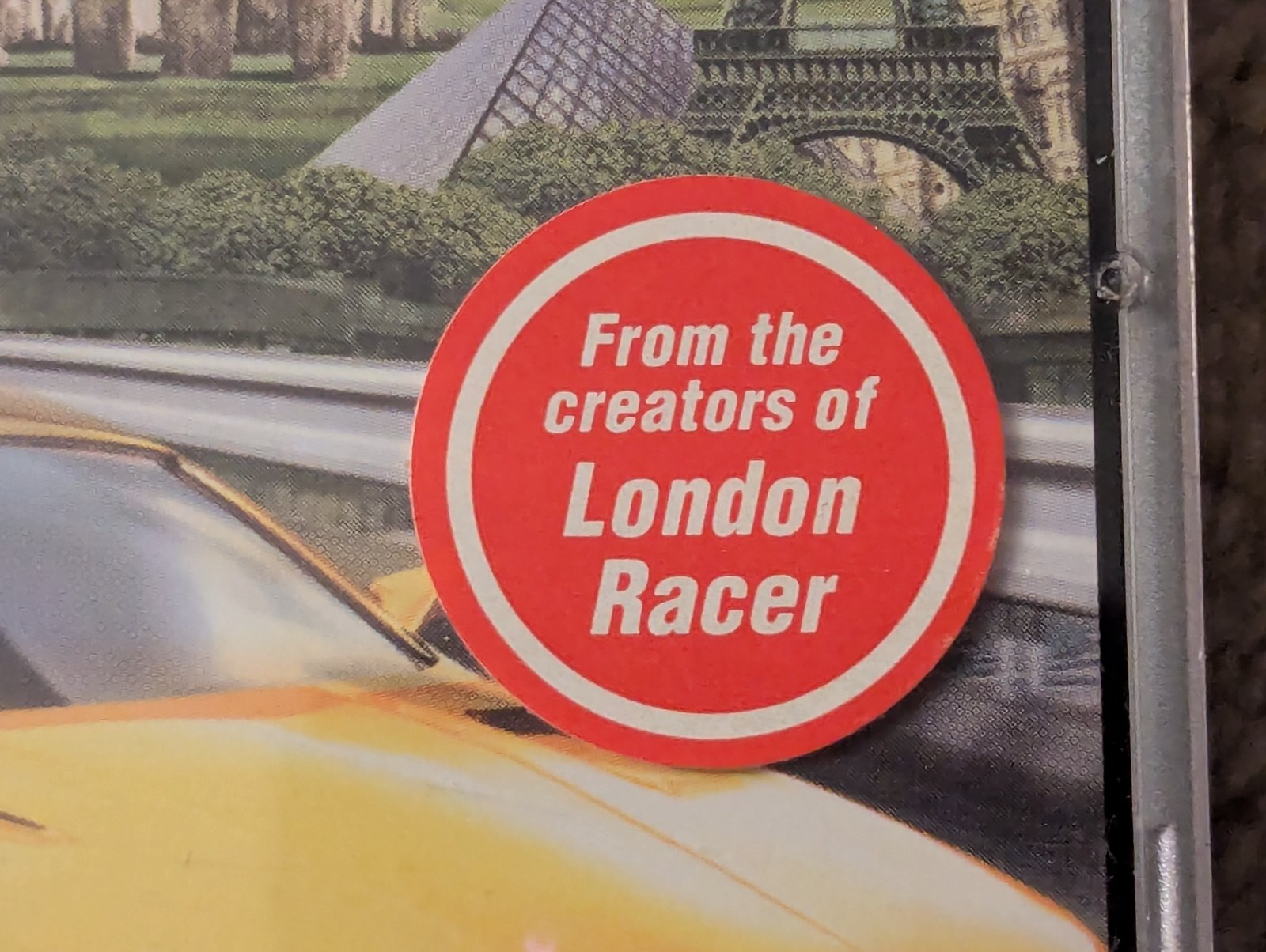 A red circular sticker highlighting the game's development pedigree from the creators of London Racer.