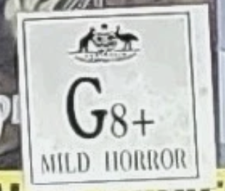 A white square classification sticker displaying the Australian G8+ age rating, suitable for ages 8 and over.