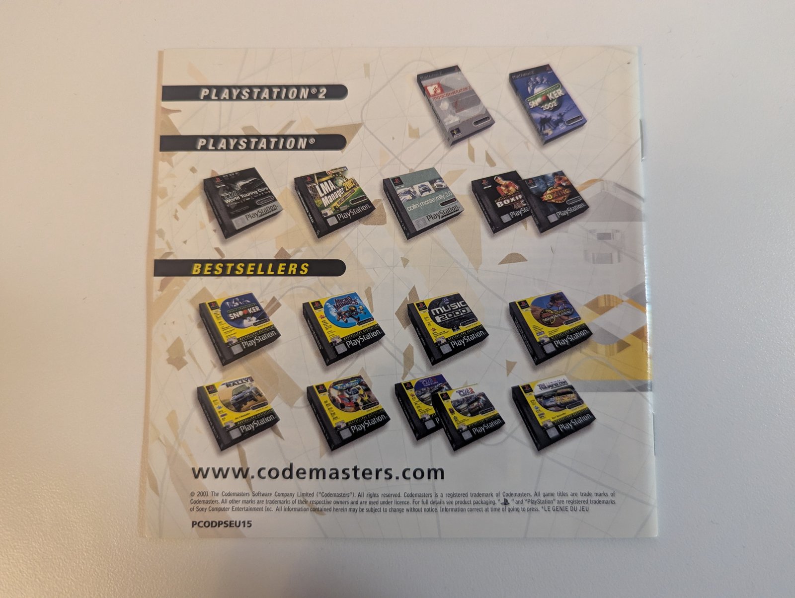 Home / Paperwork / Codemasters Catalogue Genius at Play Codemasters Catalogue Genius at Play Found In This item appears in 1 variant: Game Serial EAN TOCA 2 Touring Cars SLES-01542 5024866242065 View →