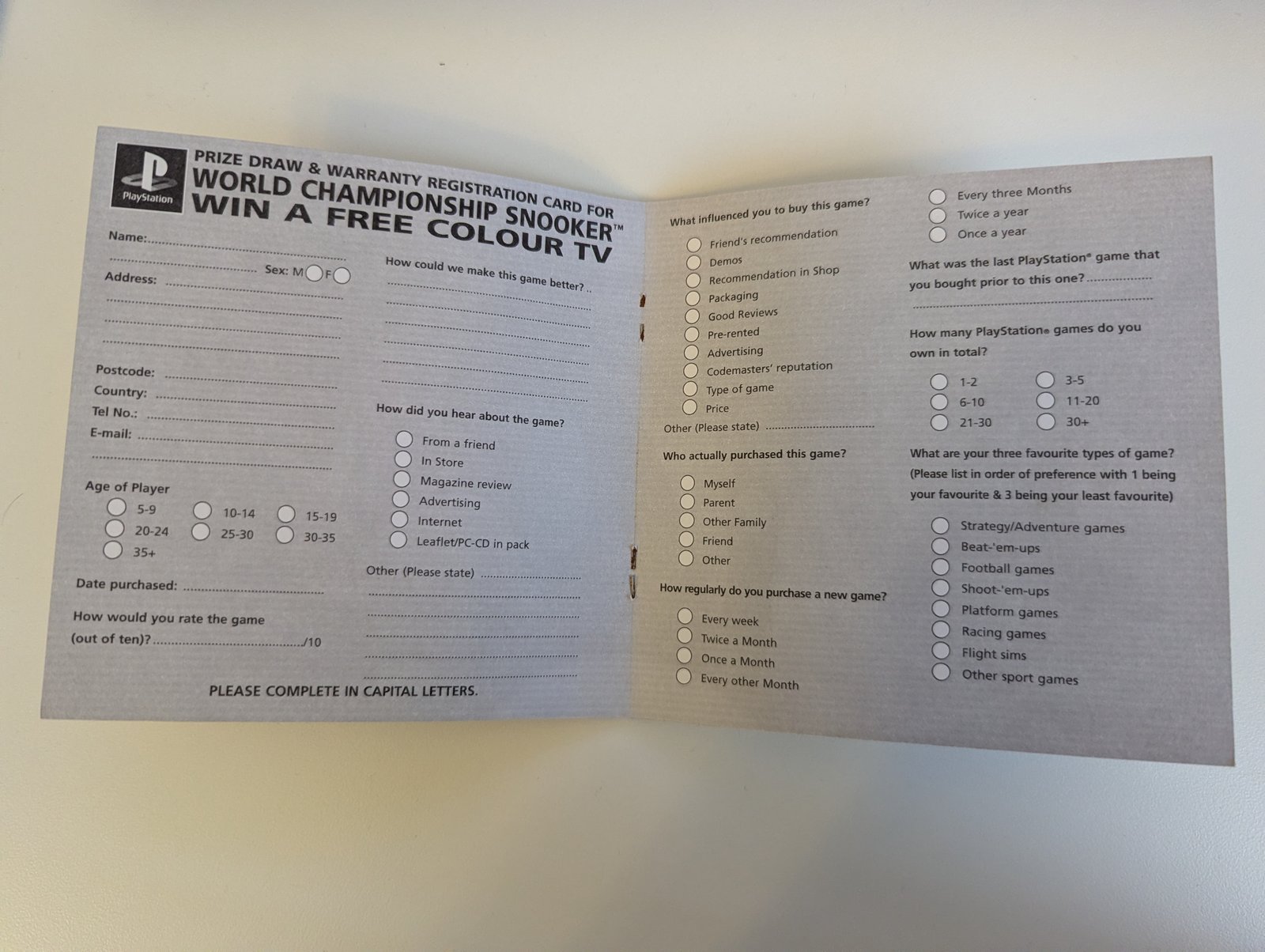 | World Championship Snooker | SLES-02196 | 5024866242041 | View → |