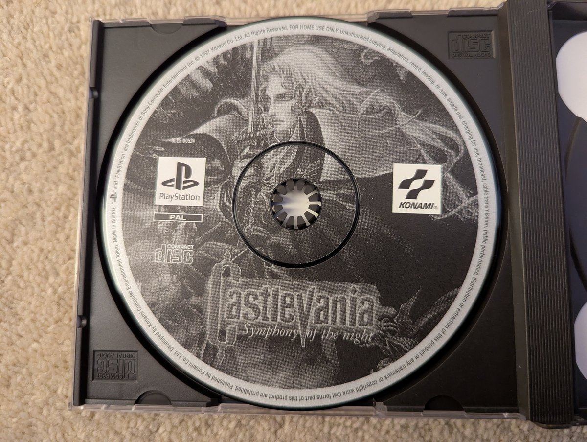 Home / Games / C / Castlevania: Symphony of the Night / Castlevania: Symphony of the Night Castlevania: Symphony of the Night SCES/SLES: SLES-00524 Disk Code: SLES-00524 EAN: 4988602060652 Type: Enhanced Edition Date: 2 November 1997 Publisher: Developer: Case: Multiway Jewel Two Disk Hologram: Hologram A Languages: English Countries: UK Disc Images Manual Images