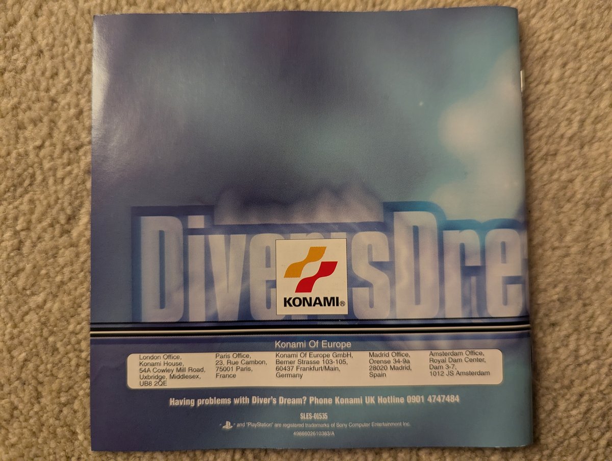 Home / Games / D / Diver's Dream / Diver's Dream Diver's Dream SCES/SLES: SLES-01535 Disk Code: SLES-01535 EAN: 4988602610383 Type: Original Date: 3 September 2001 Publisher: Developer: Case: Full Jewel PAL Hologram: Hologram B Languages: English, French, German Countries: UK Disc Images Manual Images 📄 Loose Paperwork Konami Catalogue 99 Konami Registration Card