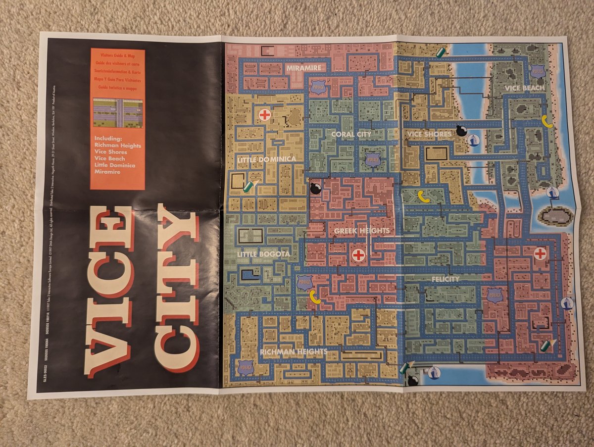 Do remember it has two maps! One with Liberty City and Vice City on alternate sides. The second has San Andreas and a poster.