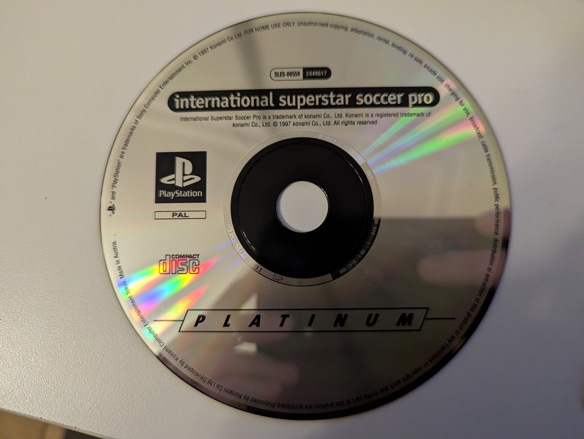 Home / Games / I / International Superstar Soccer Pro / International Superstar Soccer Pro International Superstar Soccer Pro SCES/SLES: SLES-00559 Disk Code: SLES-00559 EAN: 4988602449617 Type: Platinum Date: 1 January 2020 Publisher: Developer: Case: Full Jewel PAL Hologram: Hologram Languages: English Countries: Italy, UK Disc Images Manual Images