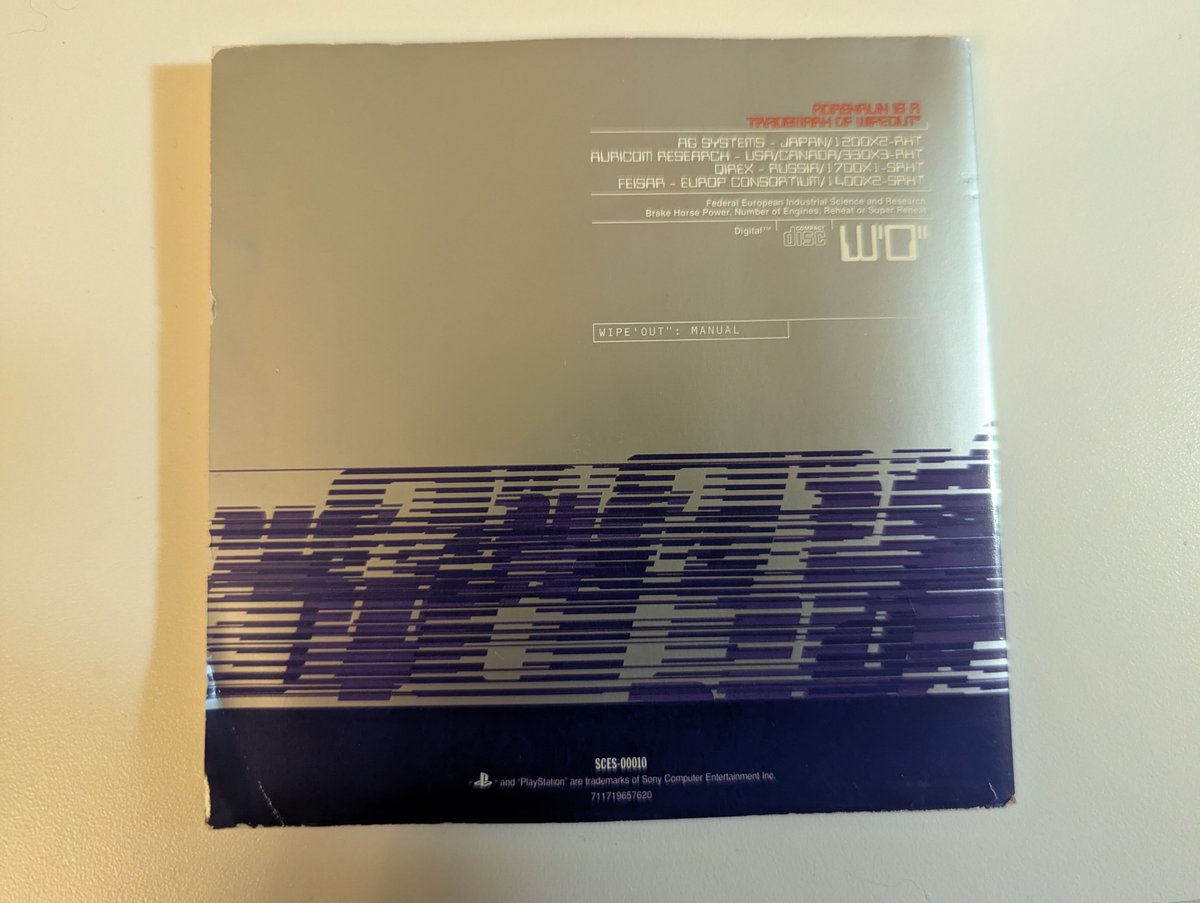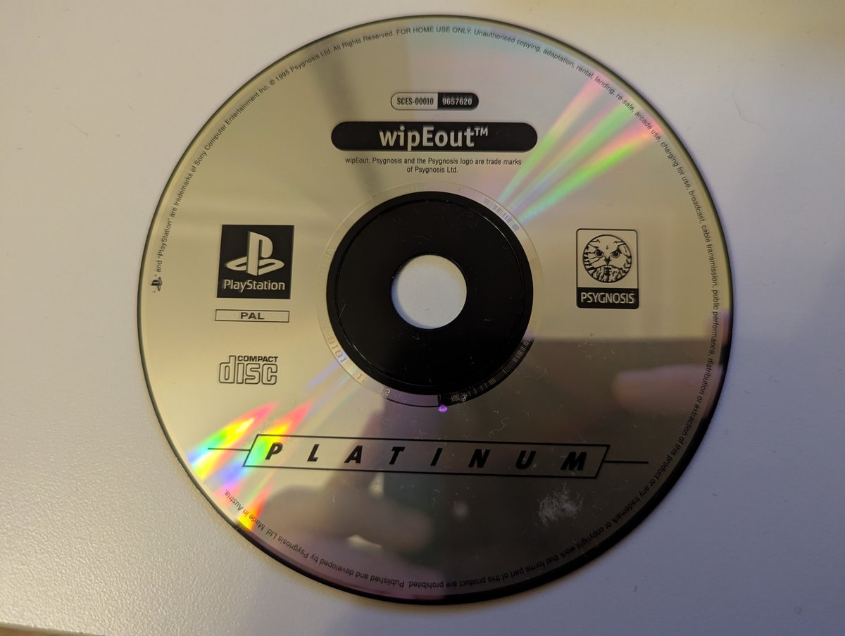 Home / Games / W / WipEout / WipEout WipEout SCES/SLES: SCES-00010 Disk Code: SCES-00010 EAN: 0711719657610 Type: Platinum Date: 1 March 1997 Publisher: Psygnosis Developer: Psygnosis Case: Mini Jewel Black Boardered PAL Hologram: Hologram Languages: English Countries: France, Germany, Italy, Netherlands, Spain, UK Disc Images Manual Images 📄 Loose Paperwork This release does not include any loose paperwork items. 🏷️ Case Stickers Yellow 'Music By' with Artists