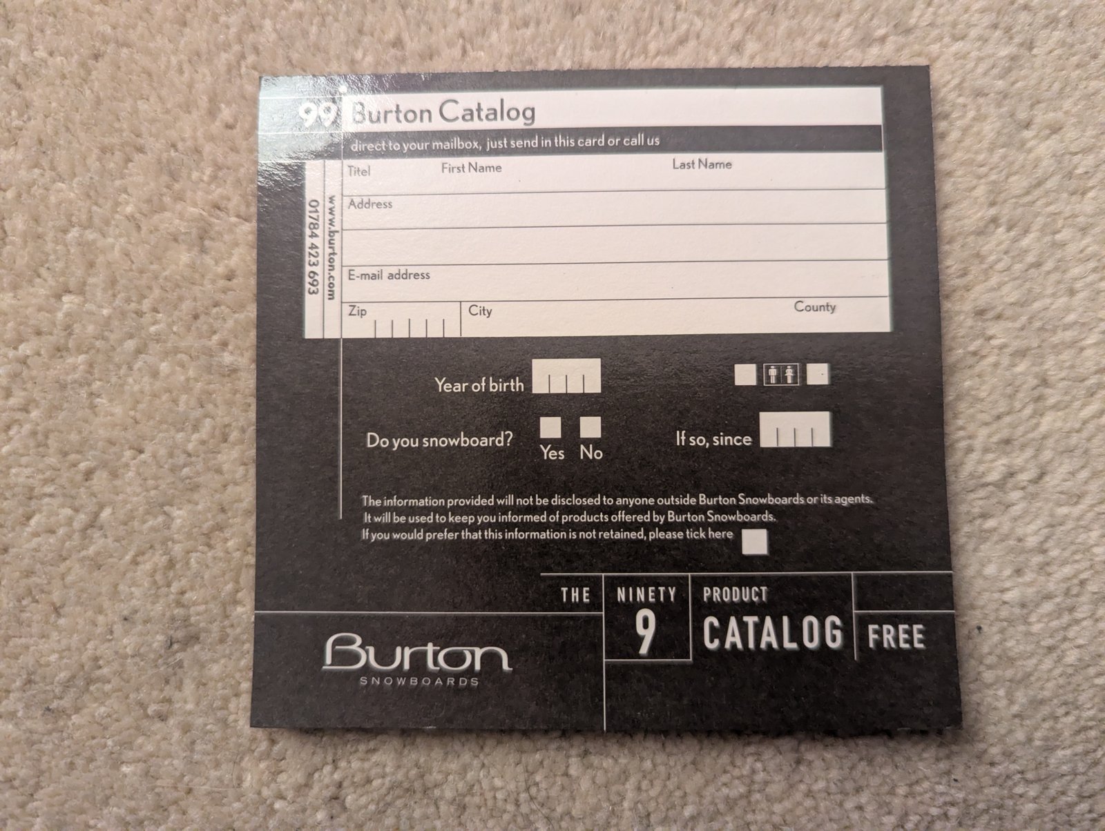 Home / Paperwork / Burton Registration Card Burton Registration Card Found In This item appears in 1 variant: Game Serial EAN Cool Boarders 2 SCES-00992 0711719709428 View →