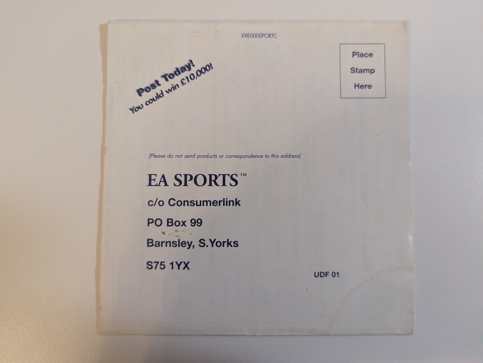 EA Sports Consumerlink Registration Card