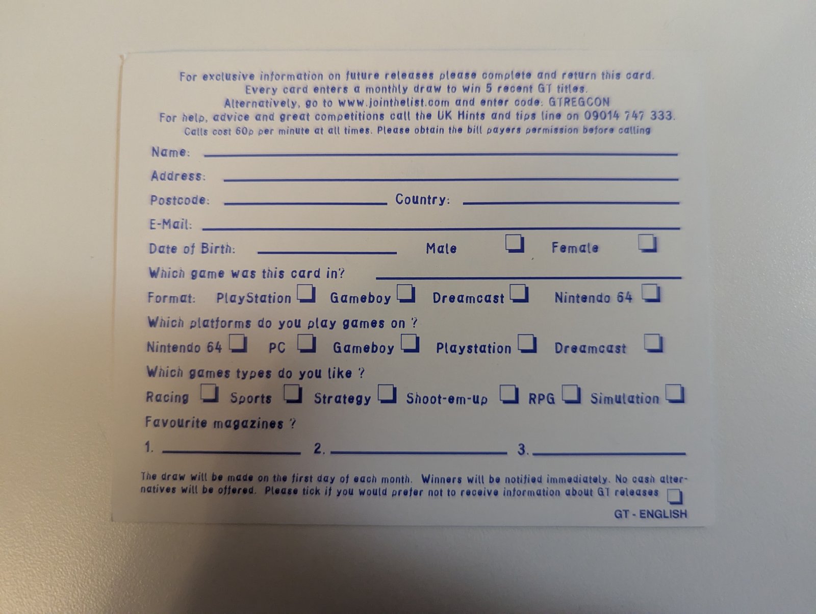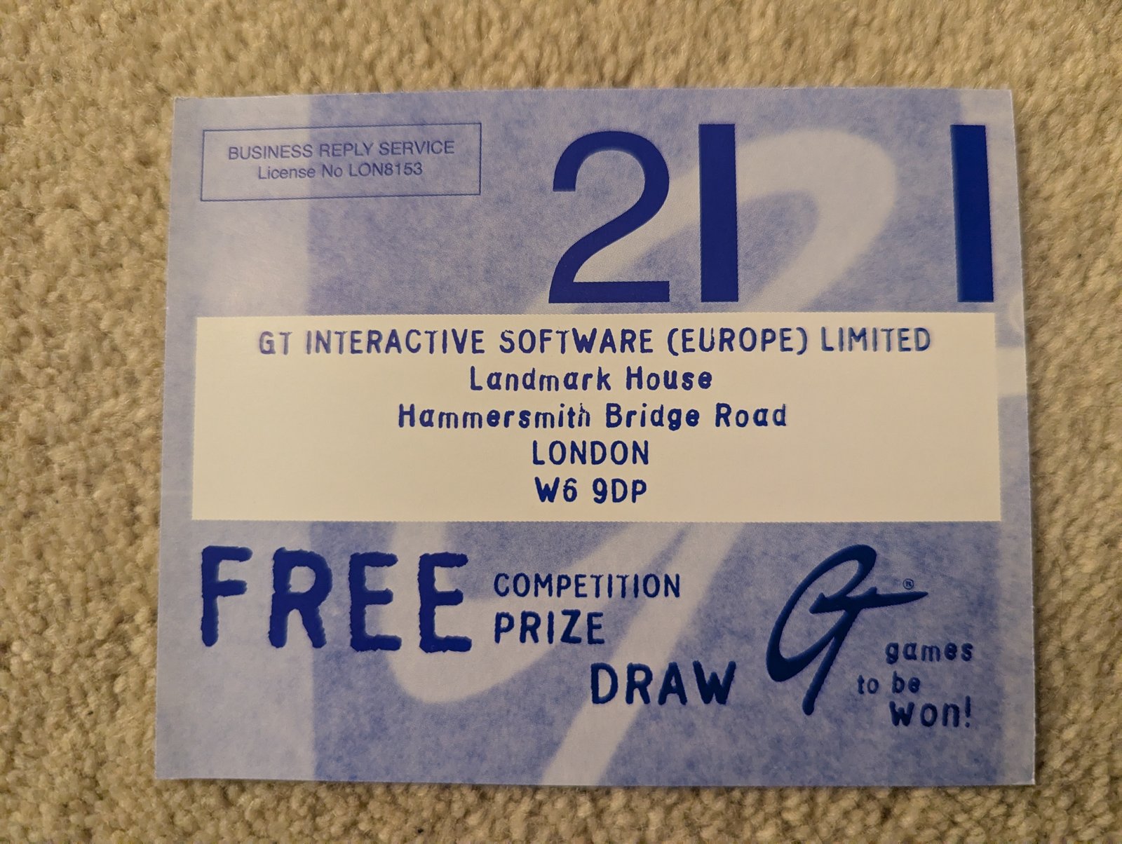 Home / Paperwork / GT Interactive Software Free Prize Draw Registration Card GT Interactive Software Free Prize Draw Registration Card Found In This item hasn't been documented in any releases yet.