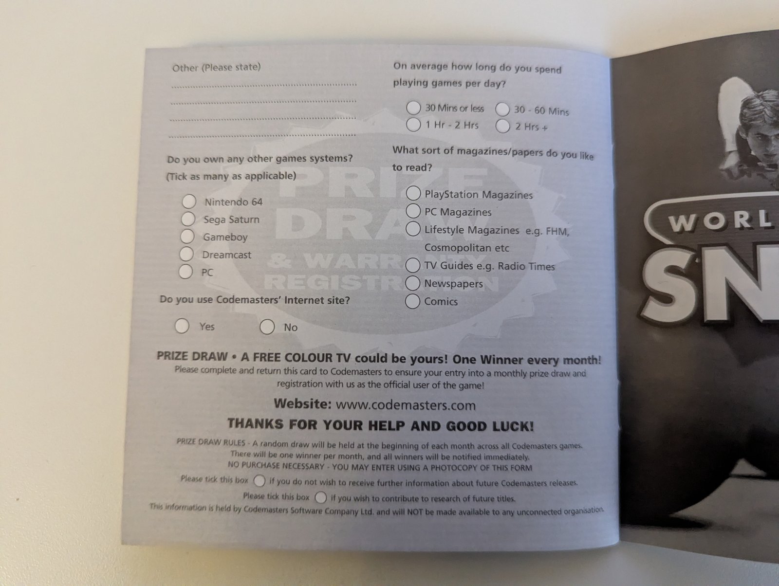 | World Championship Snooker | SLES-02196 | 5024866242041 | View → |