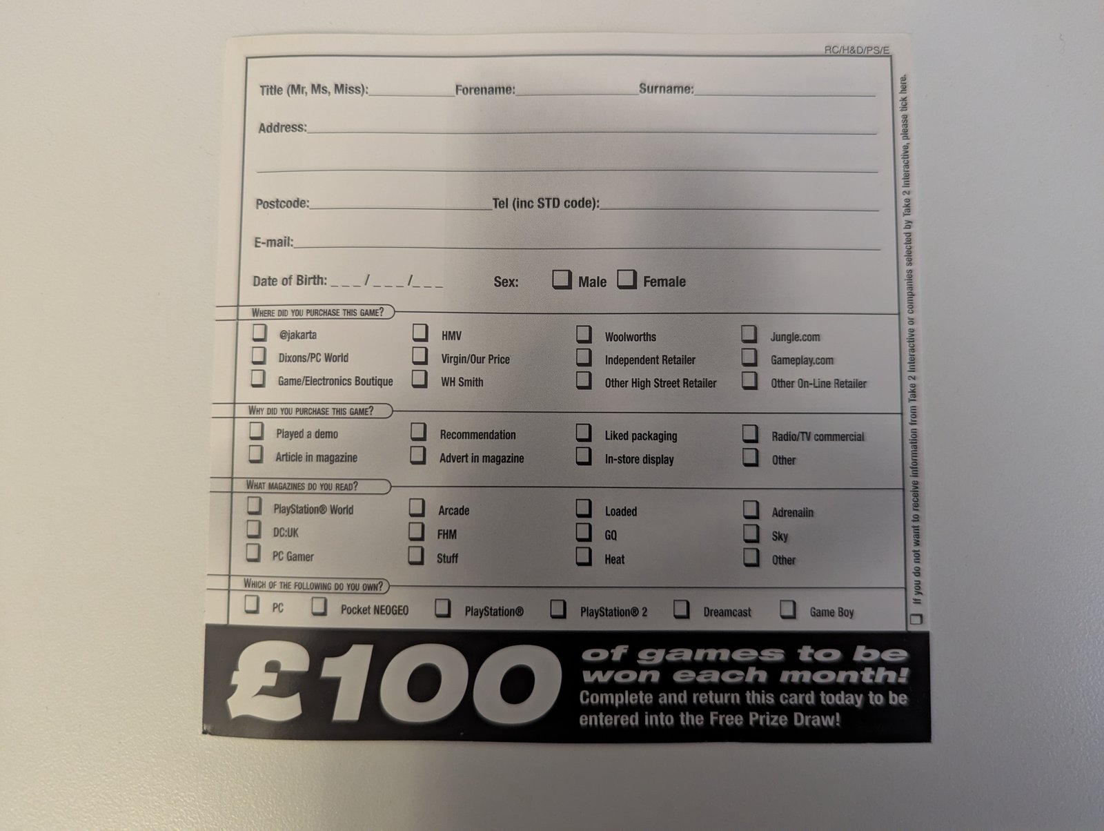 Home / Paperwork / Take 2 Saxon House Registration Card Take 2 Saxon House Registration Card Found In This item hasn't been documented in any releases yet.