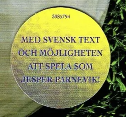 Information about the Round, Yellow, Gold Ball 3084794 Med svensk text och möjligheten att spela som Jesper Parnevik case sticker from PAL PlayStation games.