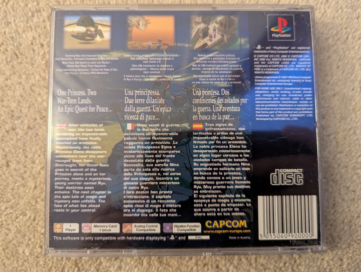 Home / Games / B / Breath of Fire IV / Breath of Fire IV Breath of Fire IV SCES/SLES: SLES-03552 Disk Code: SLES-03552 EAN: 5055060900000 Type: Original Date: 8 March 2001 Publisher: Developer: Case: Full Jewel PAL Hologram: Hologram B Languages: English Countries: Italy, Spain, UK Disc Images Manual Images