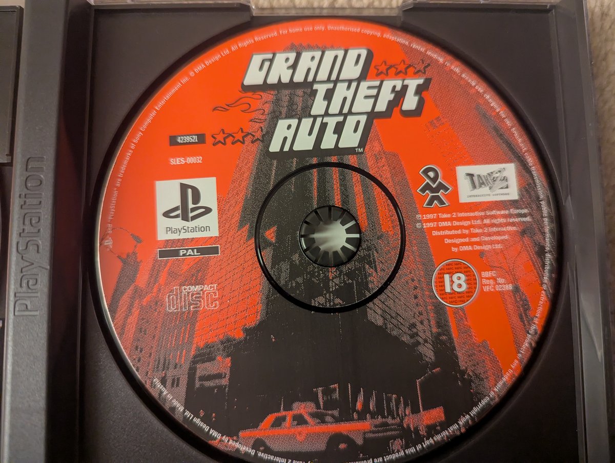 The original release of Grand Theft Auto had a disk with the logo in white (see images)