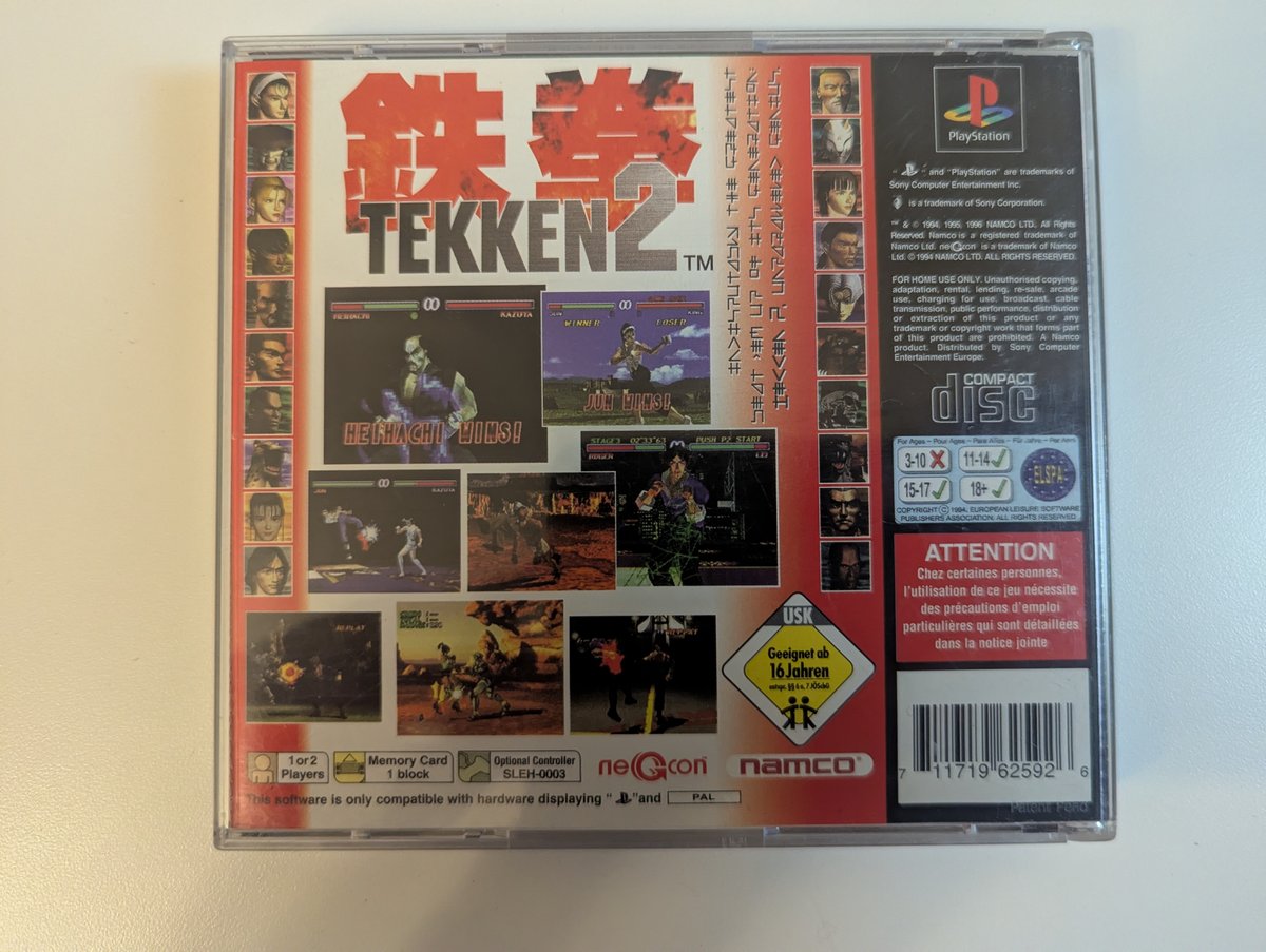 Home / Games / T / Tekken 2 / Tekken 2 Tekken 2 SCES/SLES: SCES-00255 Disk Code: SCES-00255 EAN: 0711719626121 Type: Original Date: 1 October 1996 Publisher: Developer: Case: Full Jewel PAL Hologram: No Hologram Languages: English Countries: Italy, Spain Disc Images Manual Images