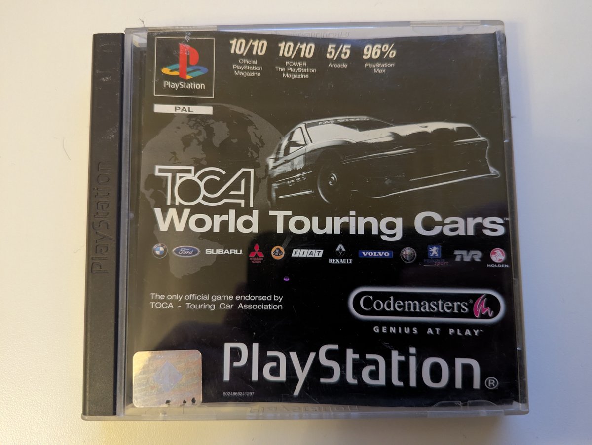 Home / Games / T / TOCA World Touring Cars / TOCA World Touring Cars TOCA World Touring Cars SCES/SLES: SLES-02572 Disk Code: SLES-02572 EAN: 5024866241297 Type: Original Date: 25 August 2000 Publisher: Developer: Case: Full Jewel PAL Hologram: Hologram B Languages: English, French, German Countries: UK Disc Images Manual Images 📄 Loose Paperwork Codemasters Dark Purple 'Nothing Gets Closer'